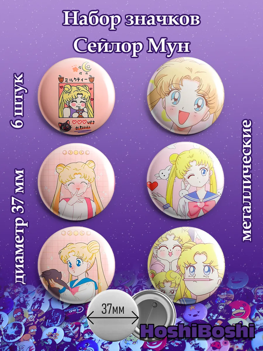 Набор из 6 металлических значков с изображениями из аниме Сейлор Мун ( Sailor Moon ).