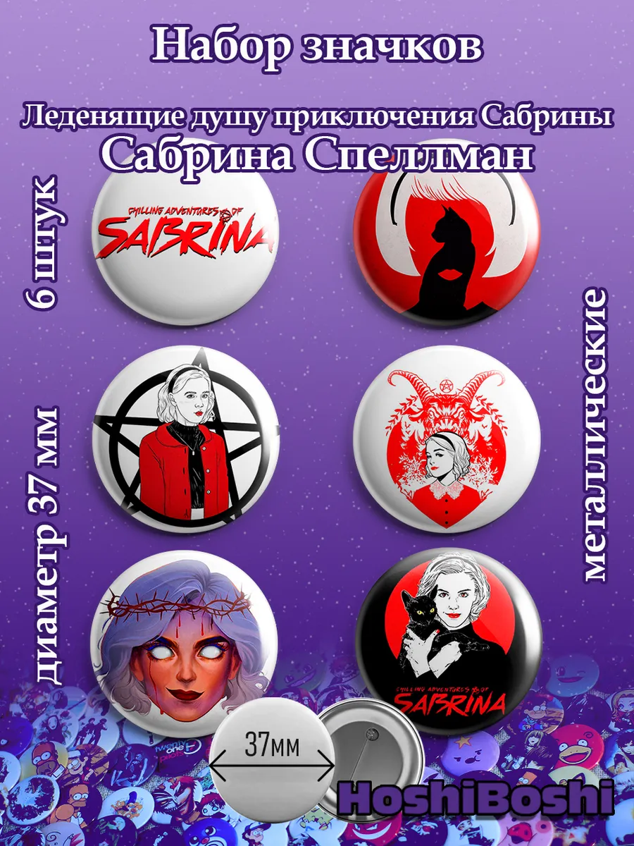 Набор из 6 металлических значков с изображениями из сериала Леденящие душу приключения Сабрины ( Chilling Adventures of Sabrina ).