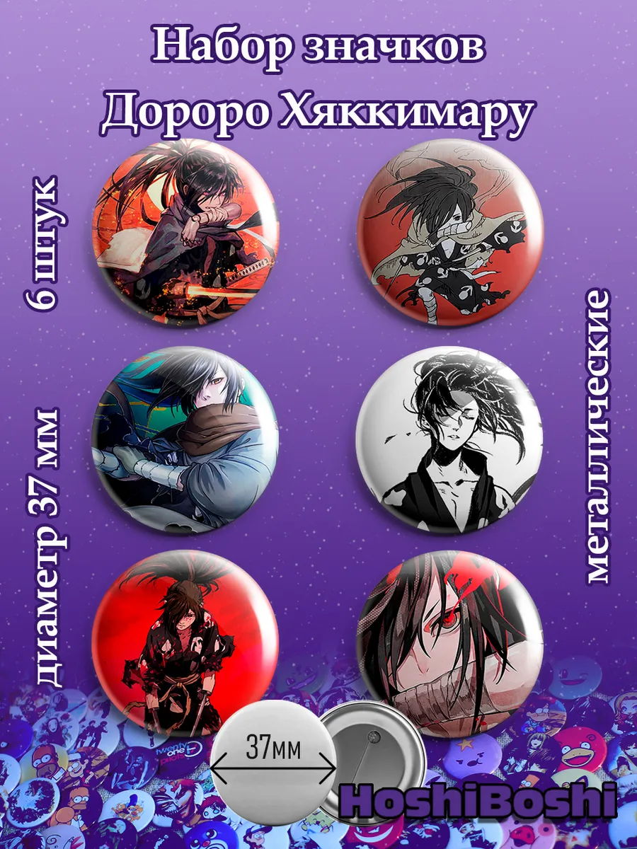 Набор из 6 металлических значков с изображениями из аниме Дороро ( Dororo ).