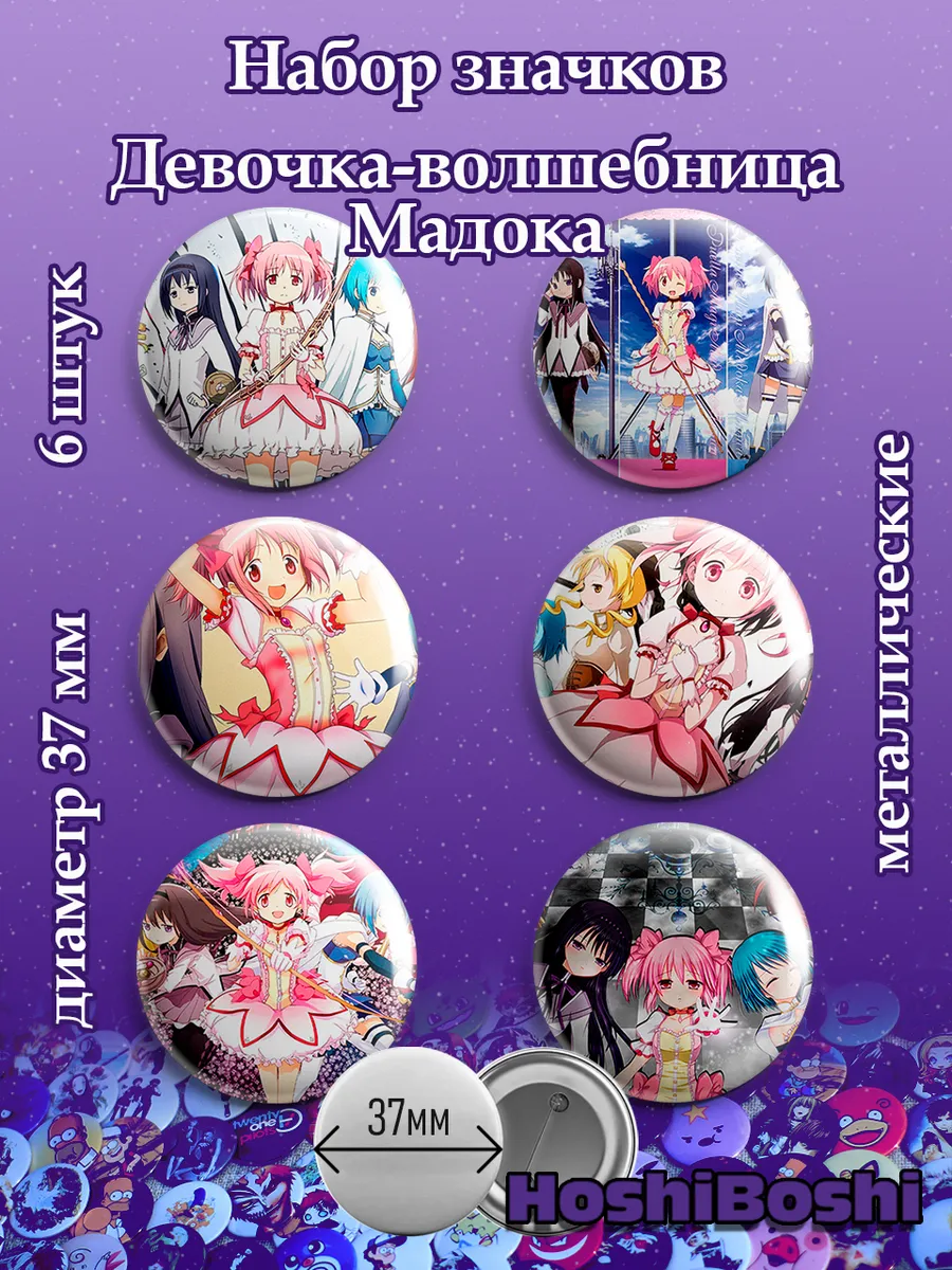 Набор из 6 металлических значков с изображениями из аниме Девочка Волшебница Мадока ( Mahou Shoujo Madoka Magica ).