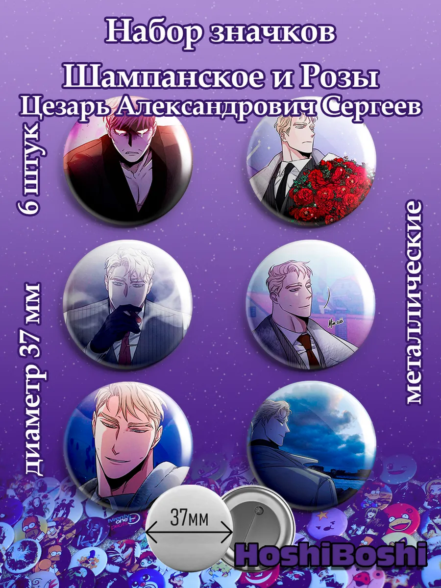 Набор из 6 металлических значков с изображениями из манхвы Шамп и розы ( Roses and Champagne ).