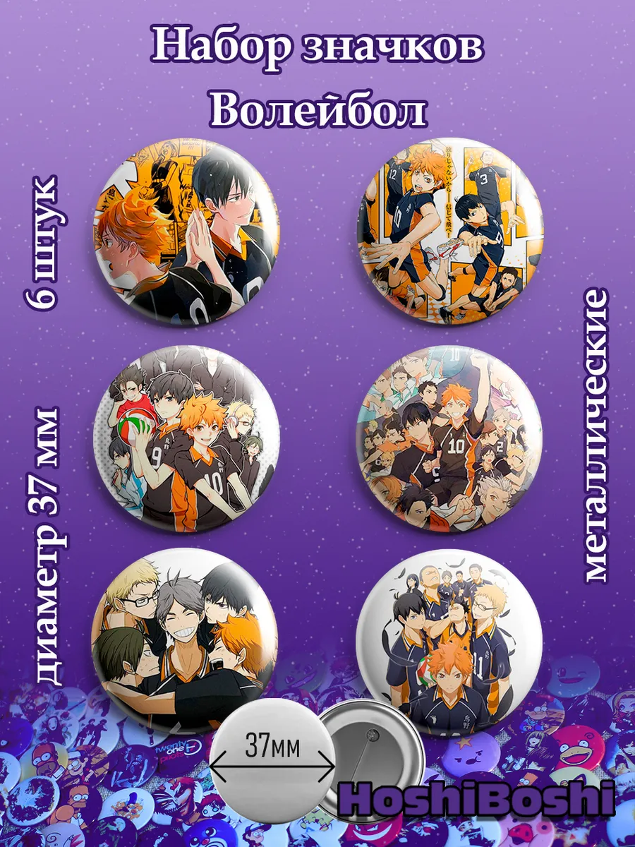 Набор из 6 металлических значков с изображениями из аниме Волейбол ( Haikyu!! ).
