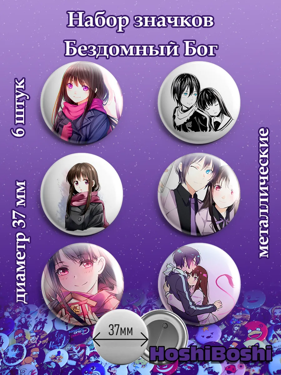 Набор из 6 металлических значков с изображениями из аниме Бездомный Бог ( Noragami ).