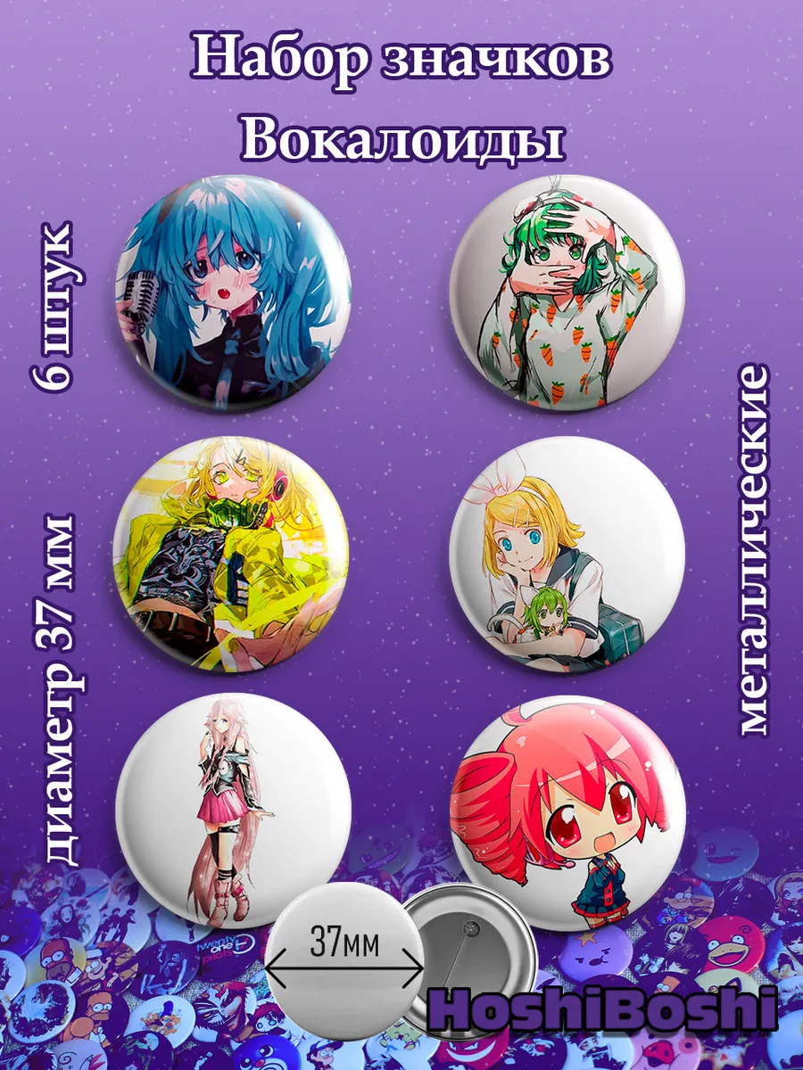 Набор из 6 металлических значков с изображениями Вокалоидов ( VOCALOID ).