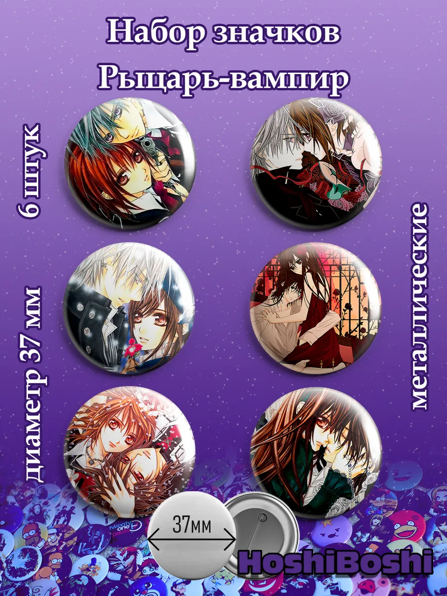 Набор из 6 металлических значков с изображениями из аниме Рыцарь-вампир ( Vampire Knight ).