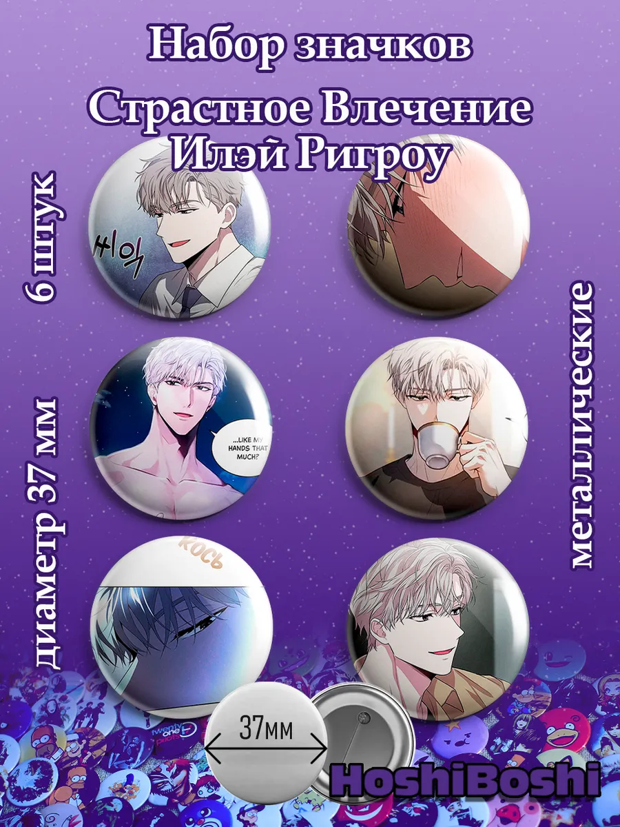 Набор из 6 металлических значков с изображениями из манхвы Страстное влечение ( Passion (Kangjak) ).