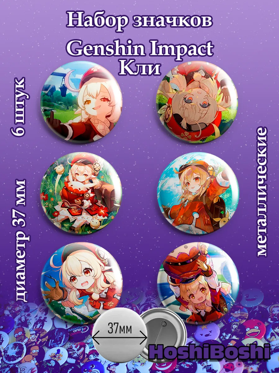 Набор из 6 металлических значков с изображениями из игры Геншин Импакт ( Genshin Impact ).