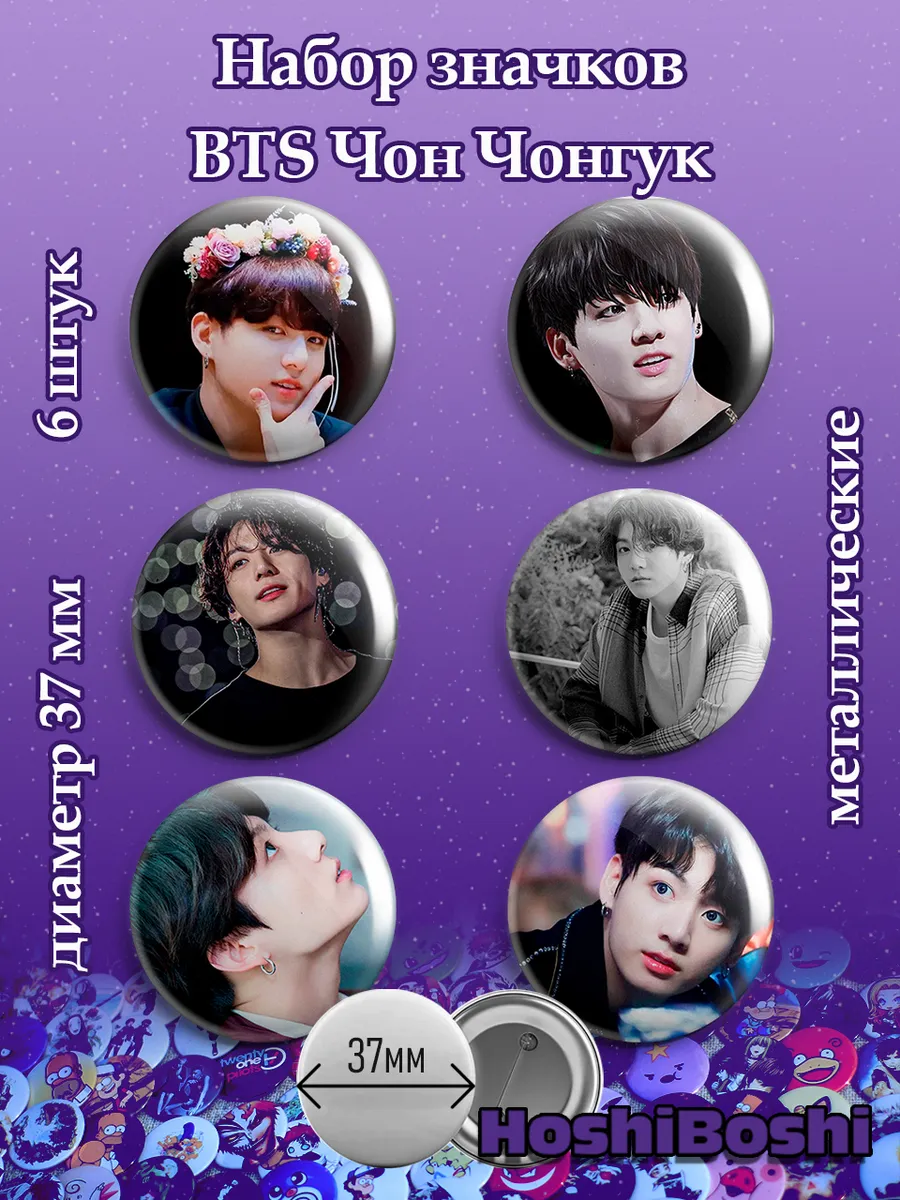Набор из 6 металлических значков с изображениями с Кей-Поп группой БТС ( BTS ).