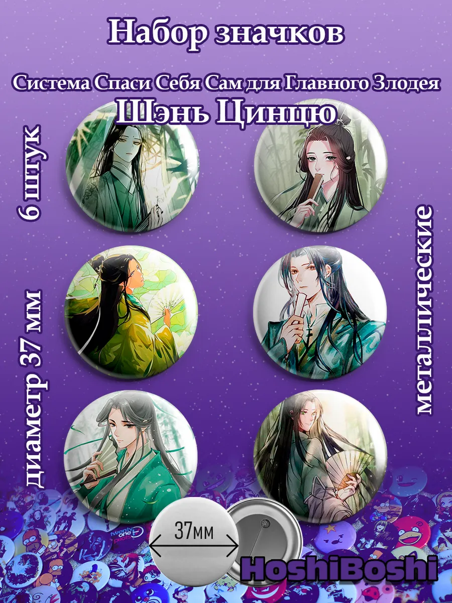 Набор из 6 металлических значков с изображениями из аниме Система спаси себя сам для главного злодея ( Chuan Shu Zijiu Zhinan ).