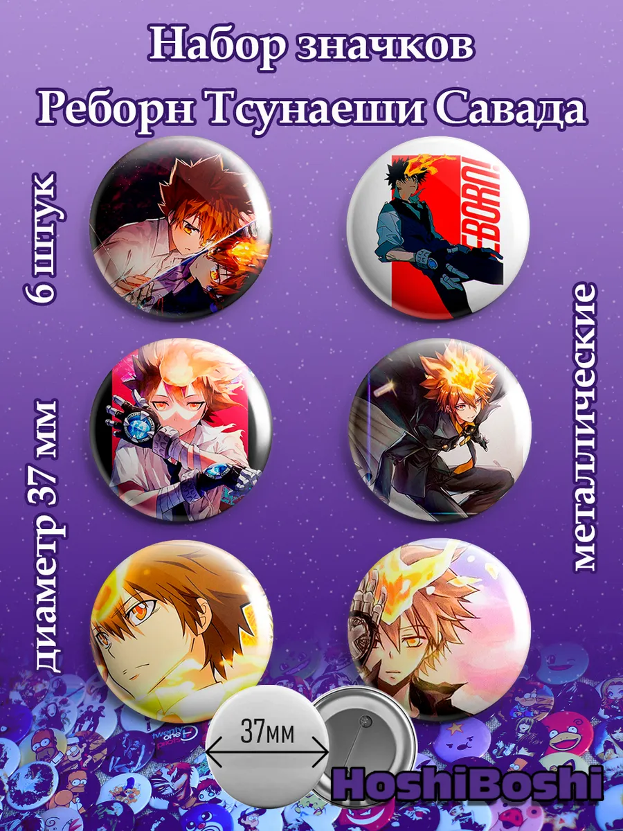 Набор из 6 металлических значков с изображениями из аниме Реборн Репетитор Киллер ( Katei Kyoshi Hitman Reborn! ).
