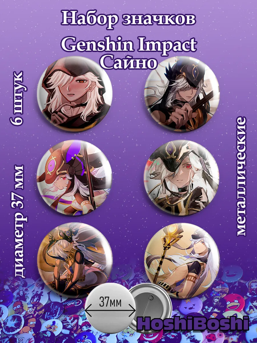 Набор из 6 металлических значков с изображениями из игры Геншин Импакт ( Genshin Impact ).