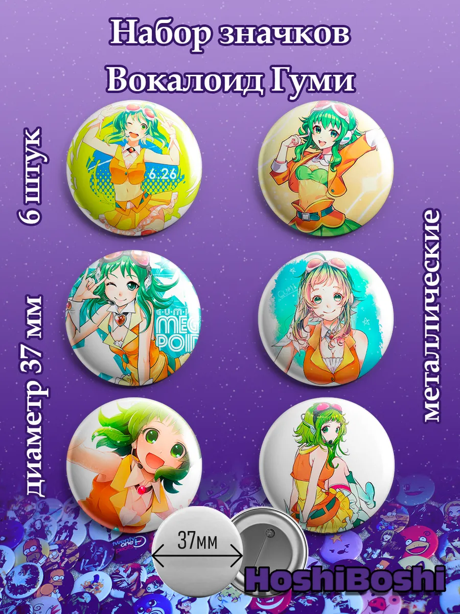Набор из 6 металлических значков с изображениями Вокалоидов ( Vocaloid ).