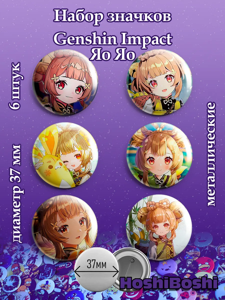 Набор из 6 металлических значков с изображениями из игры Геншин Импакт ( Genshin Impact ).