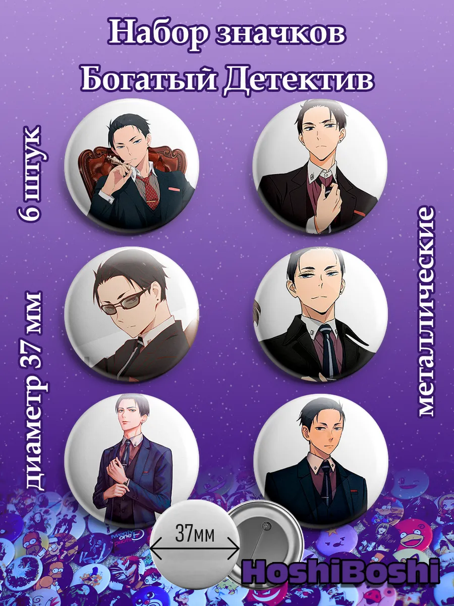 Набор из 6 металлических значков с изображениями из аниме Богатый Детектив Баланс неограничен ( The Millionaire Detective Balance: Unlimited ).