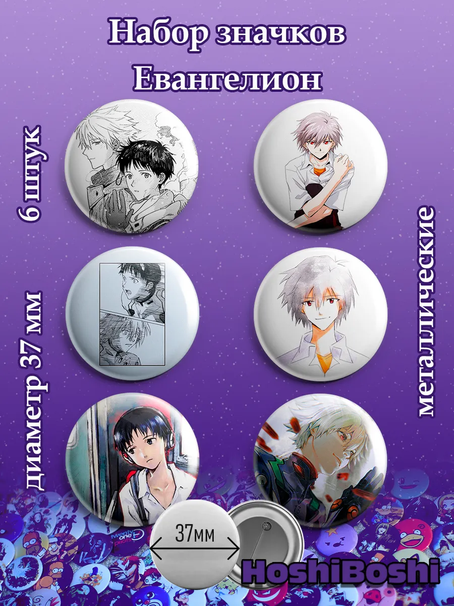 Набор из 6 металлических значков с изображениями из аниме Евангелион ( Neon Genesis Evangelion ).