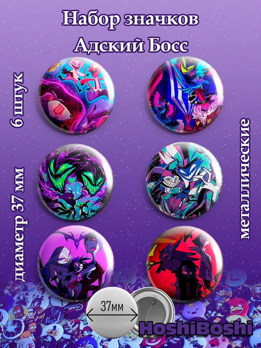 Набор из 6 металлических значков с изображениями из мультсериала Адский Босс ( Helluva Boss ).