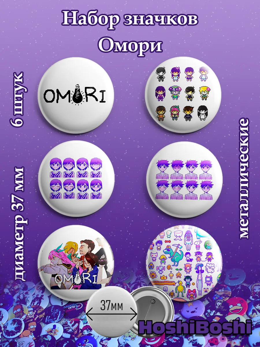 Набор из 6 металлических значков с изображениями из игры Омори ( Omori ).