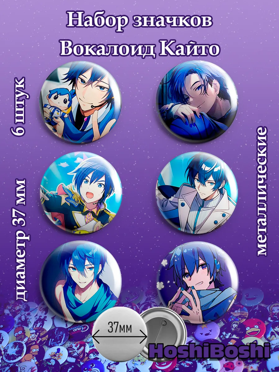 Набор из 6 металлических значков с изображениями Вокалоидов ( Vocaloid ).