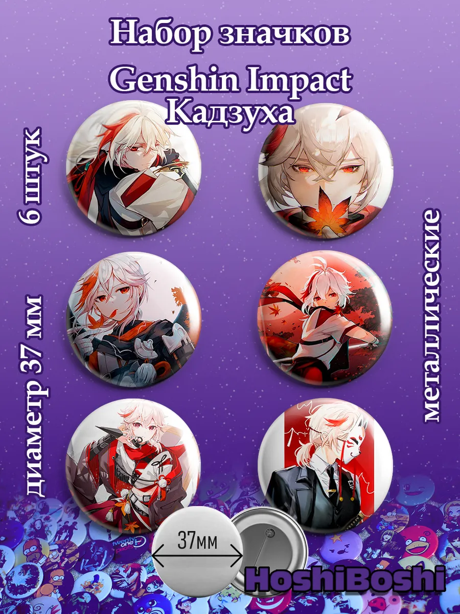 Набор из 6 металлических значков с изображениями из игры Геншин Импакт ( Genshin Impact ).