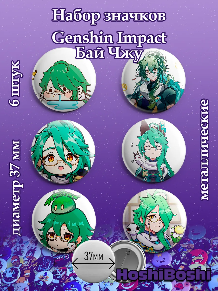 Набор из 6 металлических значков с изображениями из игры Геншин Импакт ( Genshin Impact ).