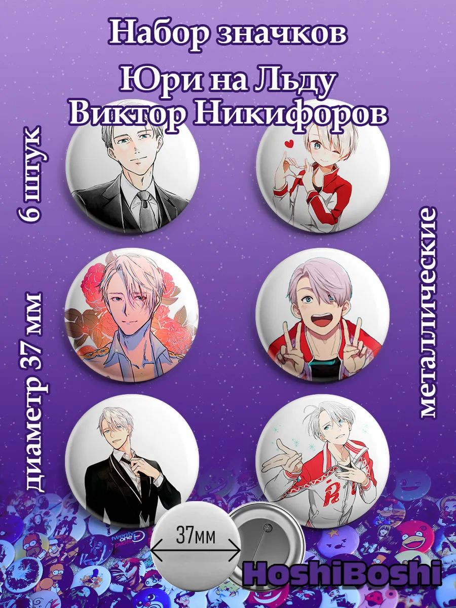 Набор из 6 металлических значков с изображениями из аниме Юри на льду ( Yuri on Ice ).