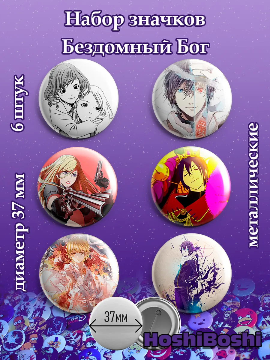 Набор из 6 металлических значков с изображениями из аниме Бездомный Бог ( Noragami ).