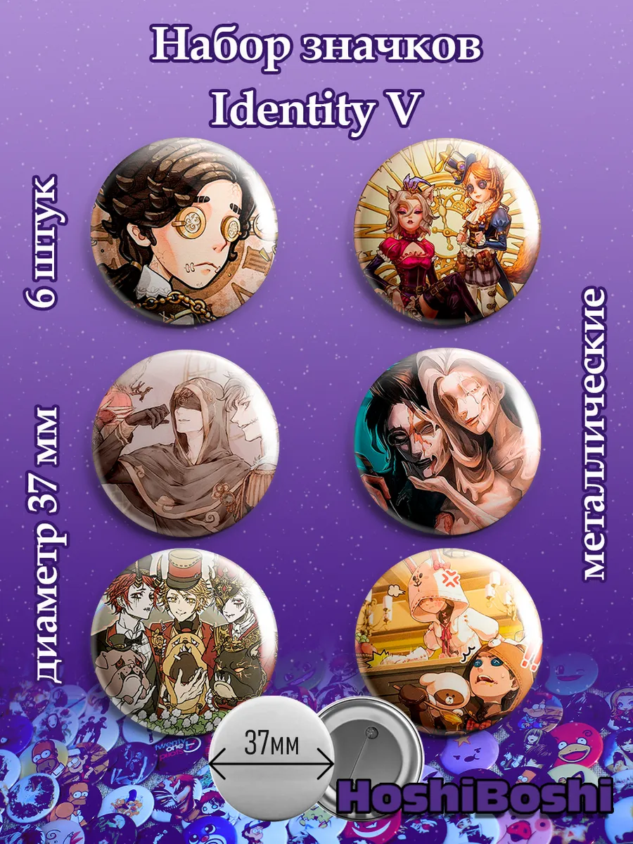 Набор из 6 металлических значков с изображениями из игры Идентити Файф ( Identity V ).