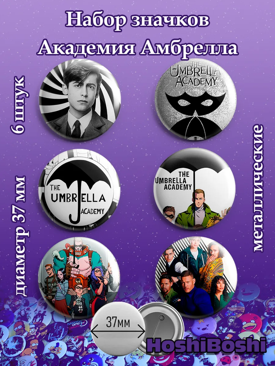 Набор из 6 металлических значков с изображениями из сериала Академия Амбрелла ( The Umbrella Academy ).
