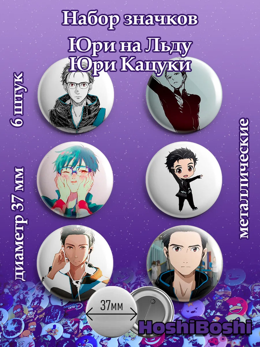 Набор из 6 металлических значков с изображениями из аниме Юри на льду ( Yuri on Ice ).