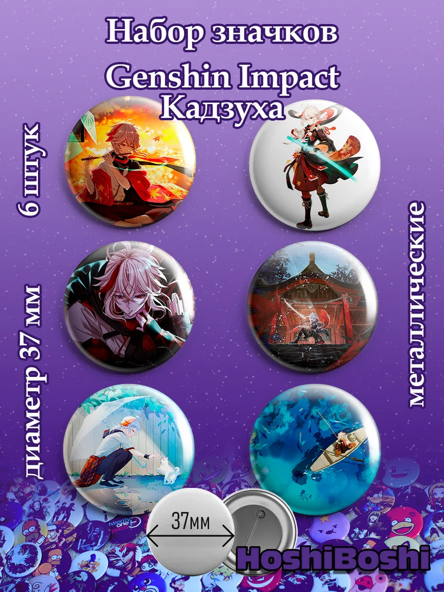 Набор из 6 металлических значков с изображениями из игры Геншин Импакт ( Genshin Impact ).
