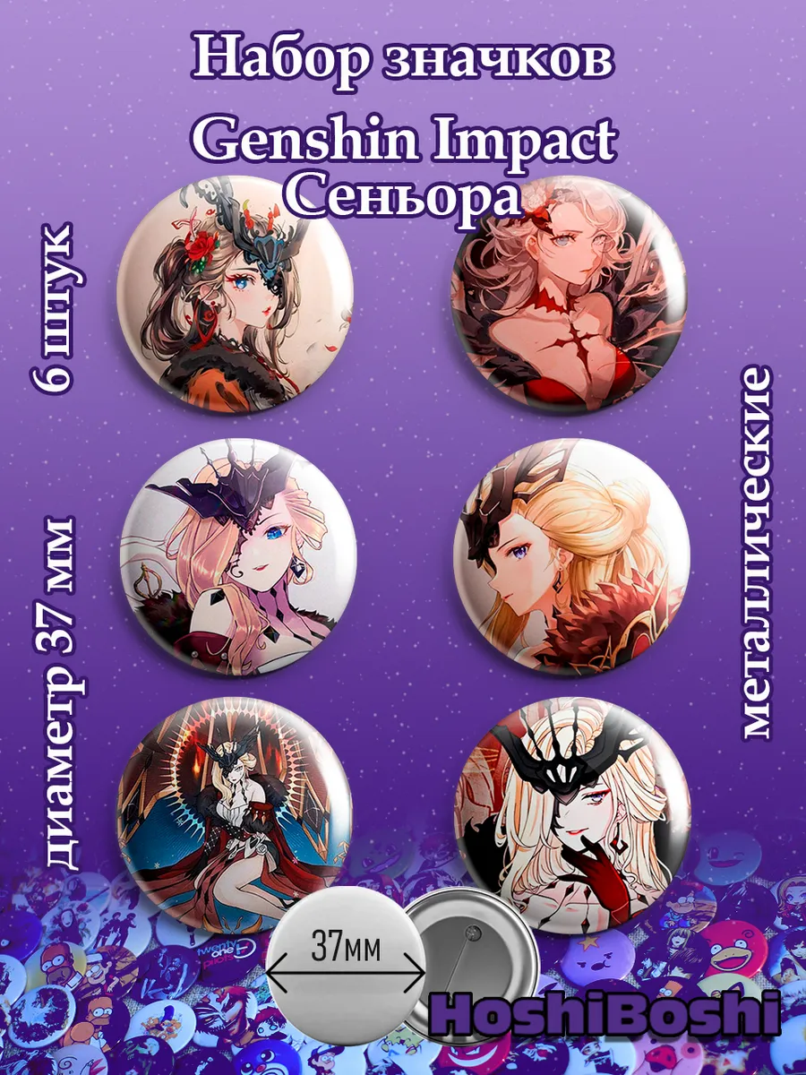 Набор из 6 металлических значков с изображениями из игры Геншин Импакт ( Genshin Impact ).