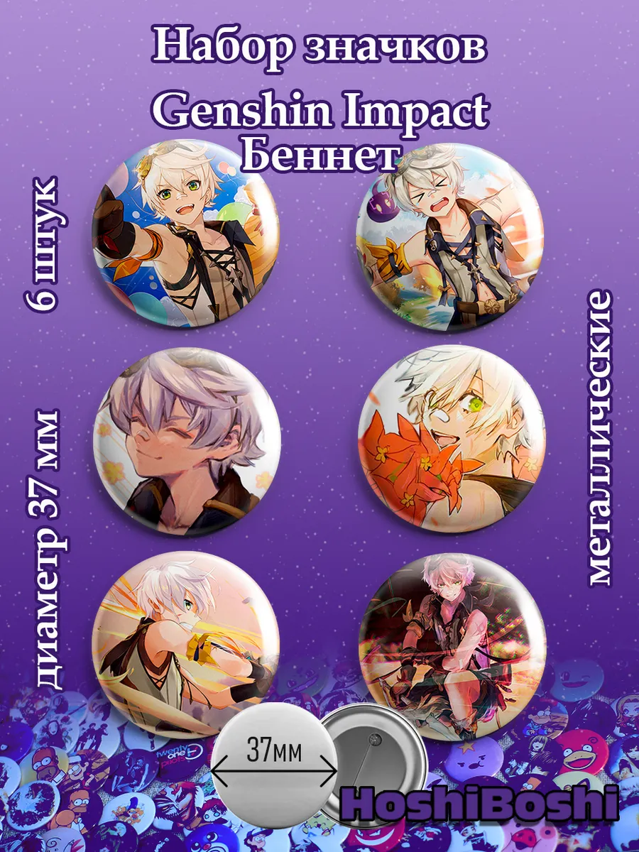 Набор из 6 металлических значков с изображениями из игры Геншин Импакт ( Genshin Impact ).