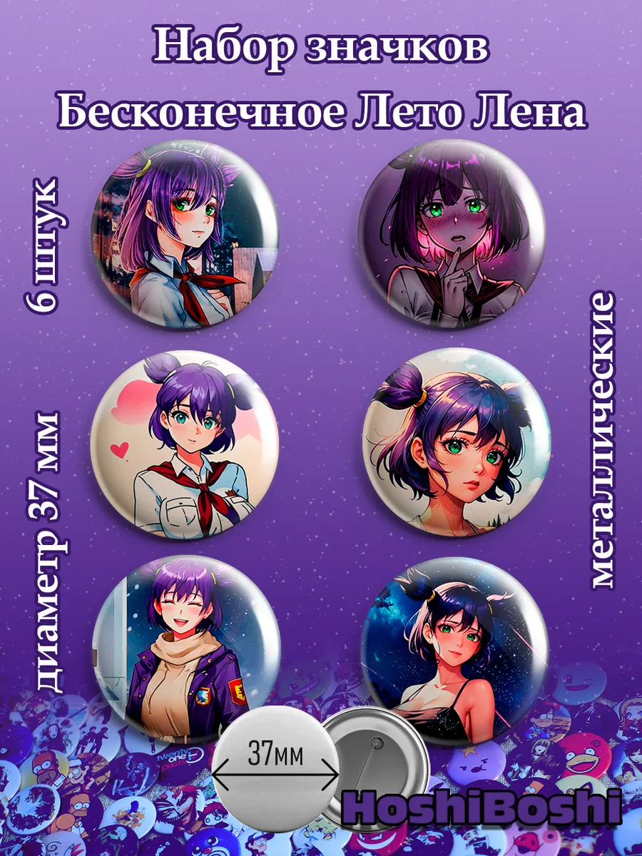 Набор из 6 металлических значков с изображениями из игры Бесконечное Лето ( Everlasting Summer ).