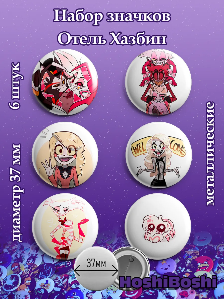 Набор из 6 металлических значков с изображениями из мультсериала Отель Хазбин ( Hazbin Hotel ).