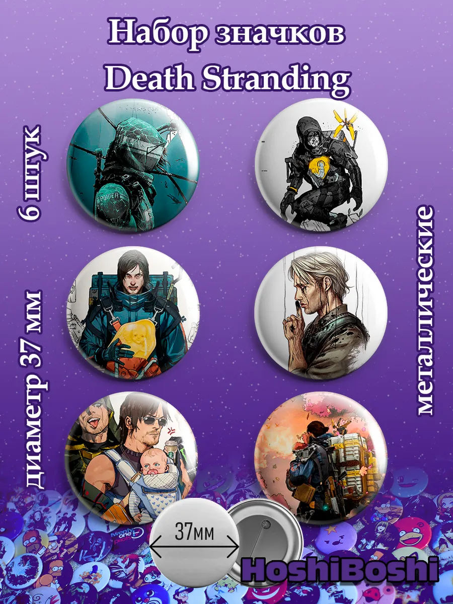 Набор из 6 металлических значков с изображениями из игры Дез Стрэндинг ( Death Stranding ).