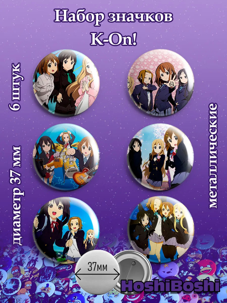 Набор из 6 металлических значков с изображениями из аниме Кейон ( K-On! ).