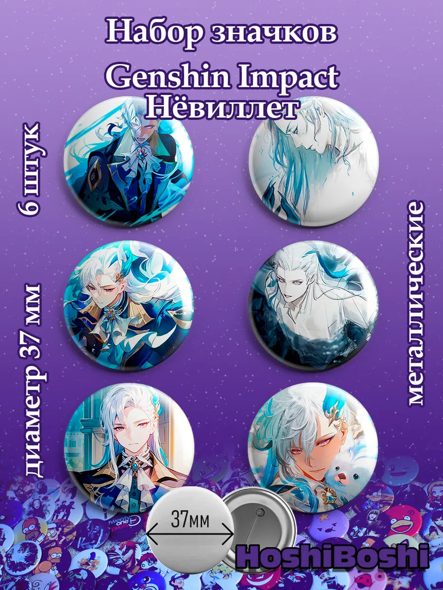 Набор из 6 металлических значков с изображениями из игры Геншин Импакт ( Genshin Impact ).