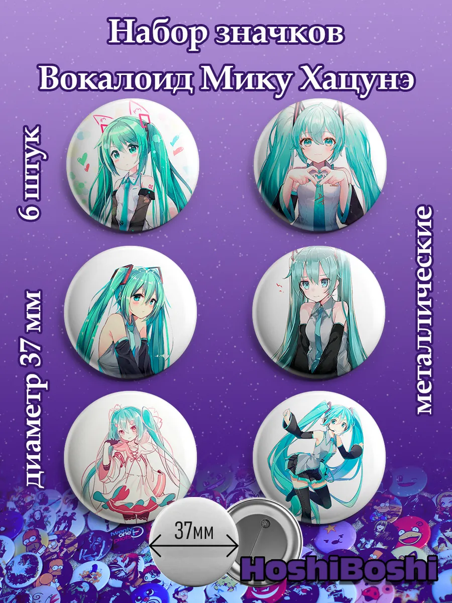 Набор из 6 металлических значков с изображениями Вокалоидов ( Vocaloid ).