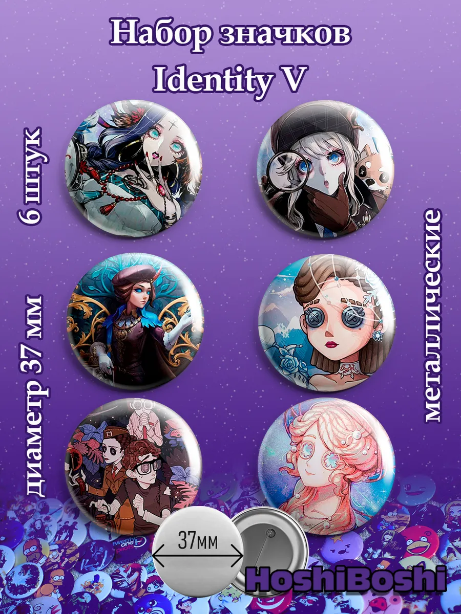 Набор из 6 металлических значков с изображениями из игры Идентити Файф ( Identity V ).