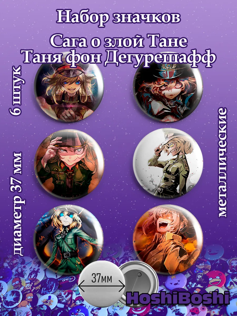 Набор из 6 металлических значков с изображениями из аниме Сага о злой Тане ( The Saga of Tanya the Evil ).