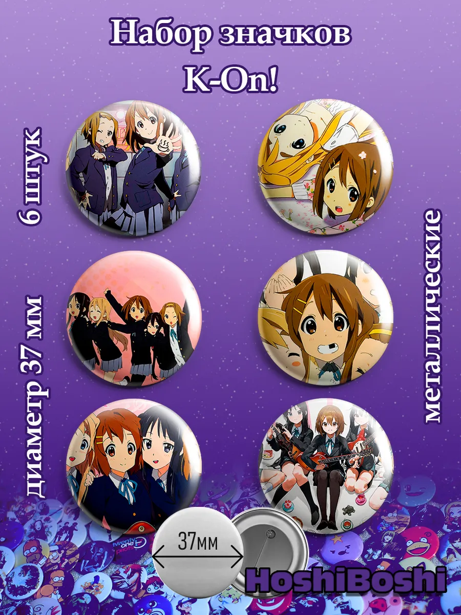 Набор из 6 металлических значков с изображениями из аниме Кейон ( K-On! ).