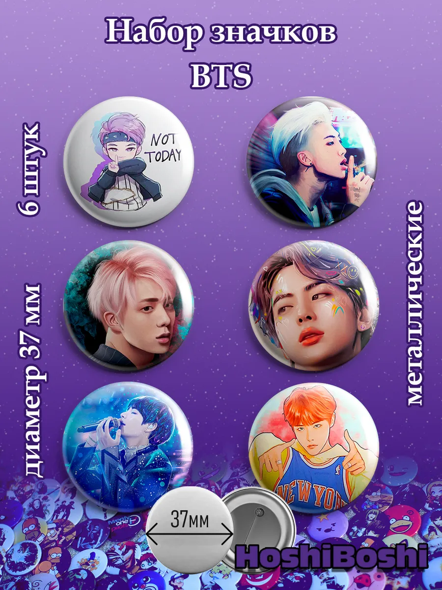 Набор из 6 металлических значков с изображениями с Кей-Поп группой БТС ( BTS ).