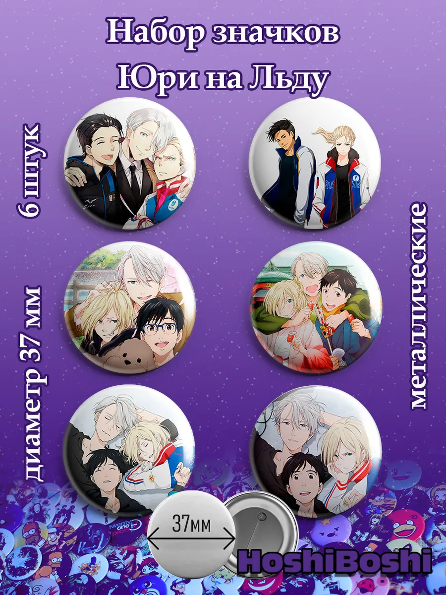 Набор из 6 металлических значков с изображениями из аниме Юри на льду ( Yuri on Ice ).