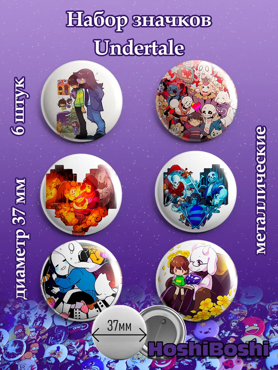 Набор из 6 металлических значков с изображениями из игры Андертейл ( Undertale ).