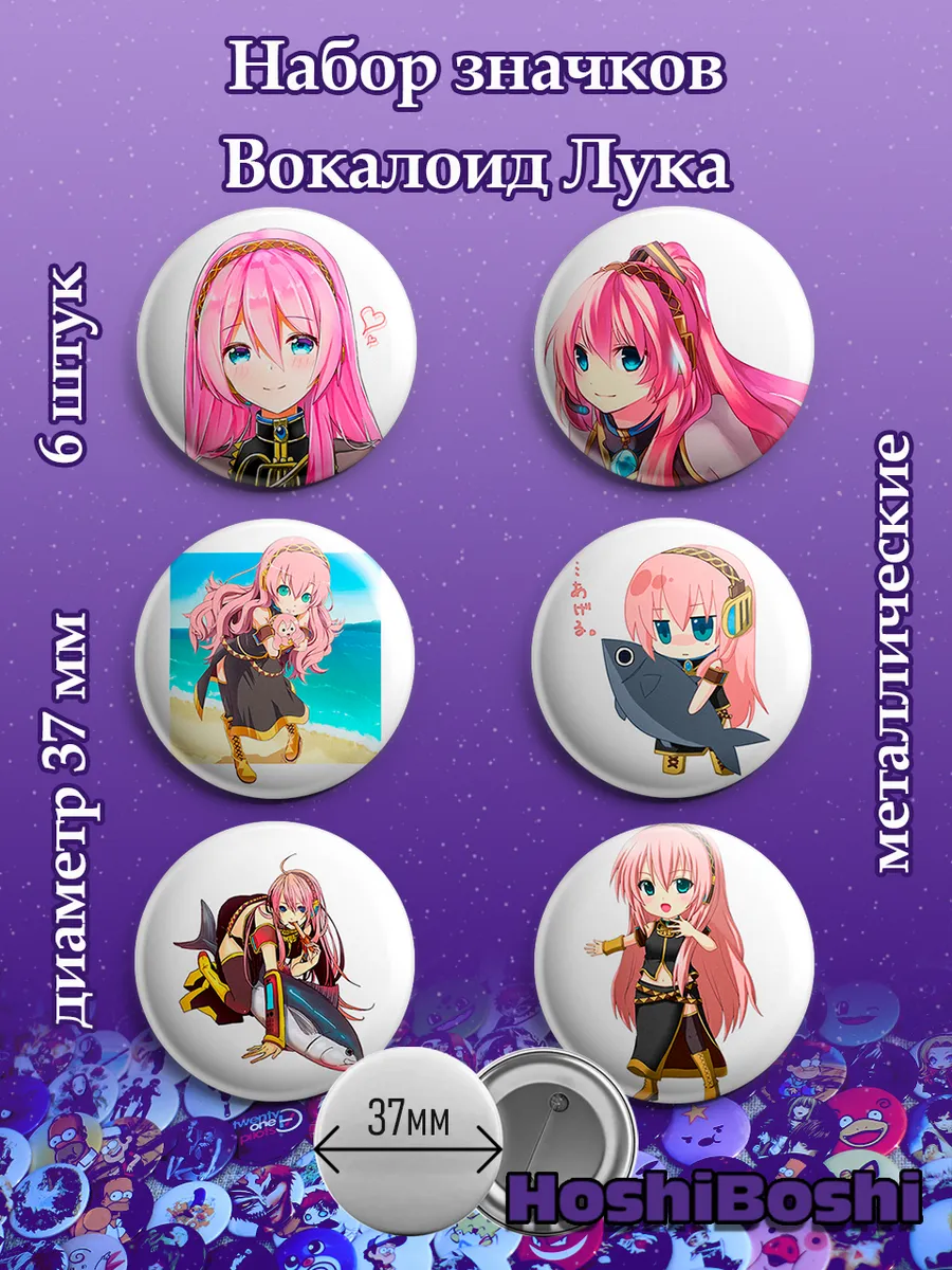 Набор из 6 металлических значков с изображениями Вокалоидов ( Vocaloid ).
