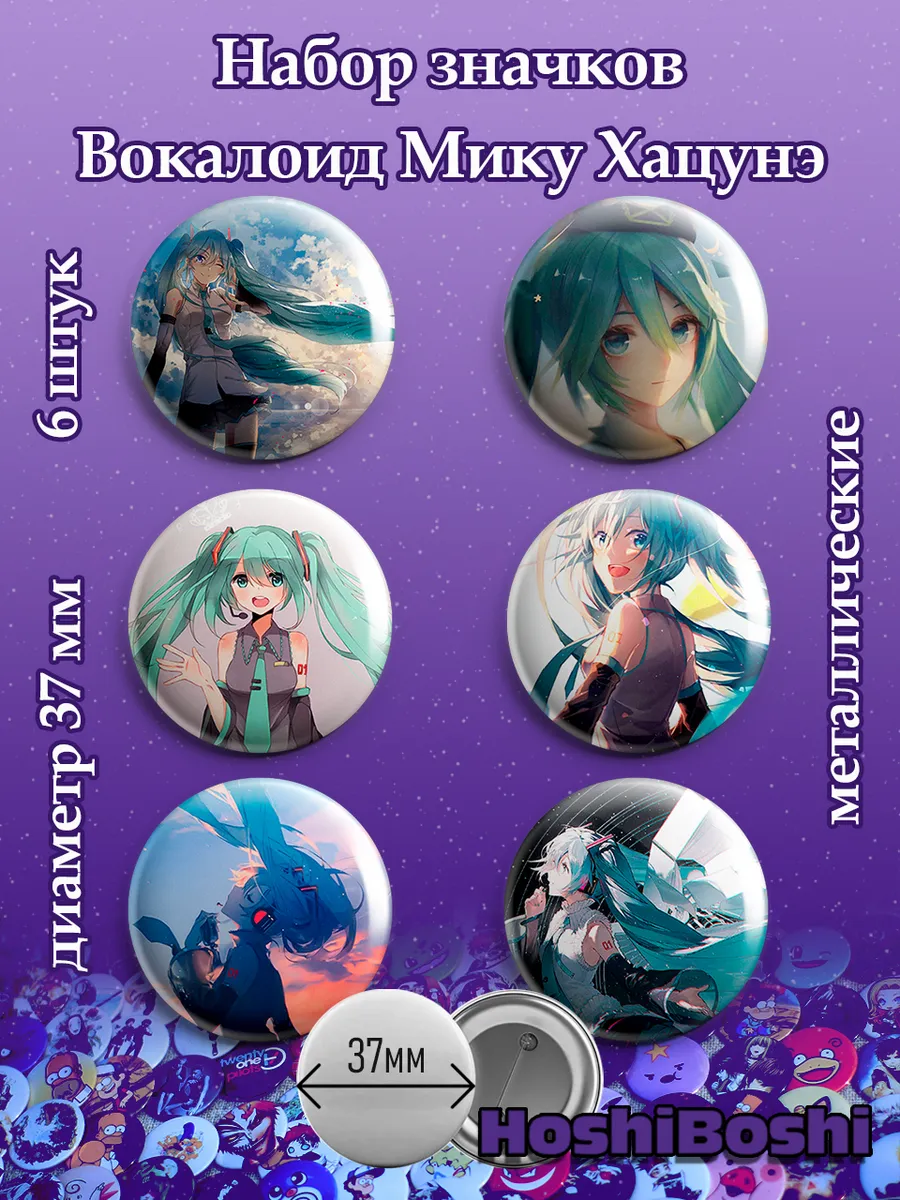 Набор из 6 металлических значков с изображениями Вокалоидов ( Vocaloid ).