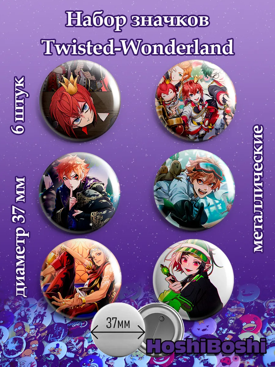 Набор из 6 металлических значков с изображениями из игры Твистед Вондерленд ( Twisted-Wonderland ).