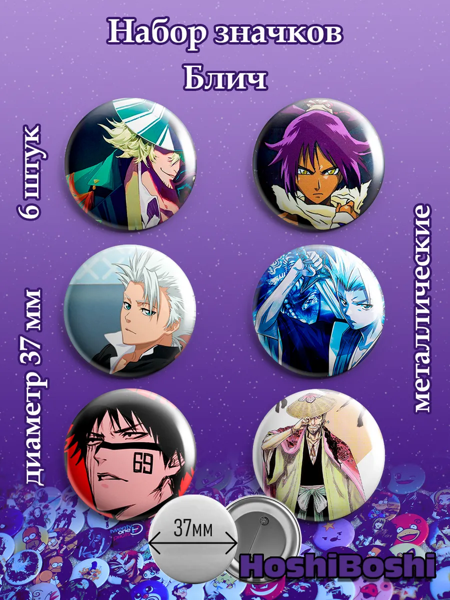 Набор из 6 металлических значков с изображениями из аниме Блич ( Bleach ).