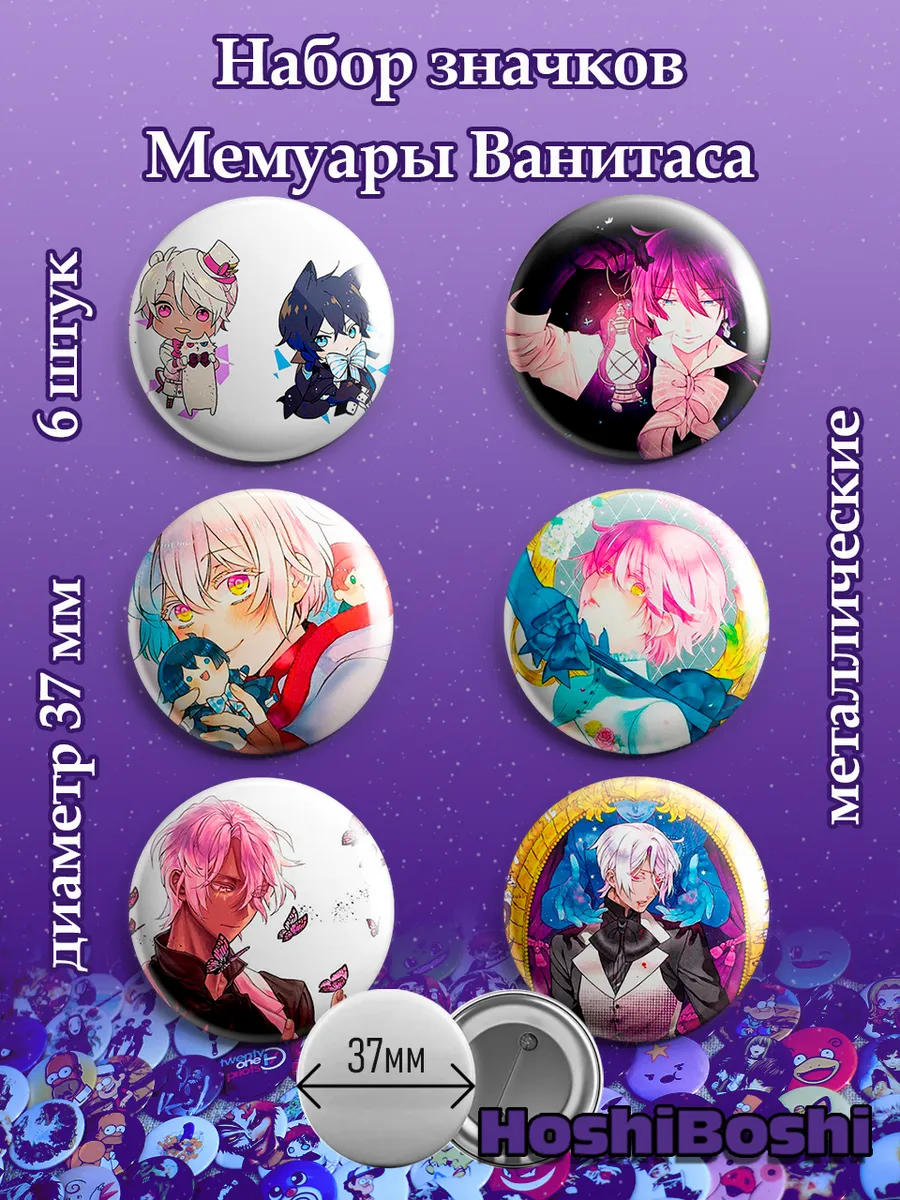 Набор из 6 металлических значков с изображениями из аниме Мемуары Ванитаса ( The Case Study of Vanitas Vanitas no carte ).