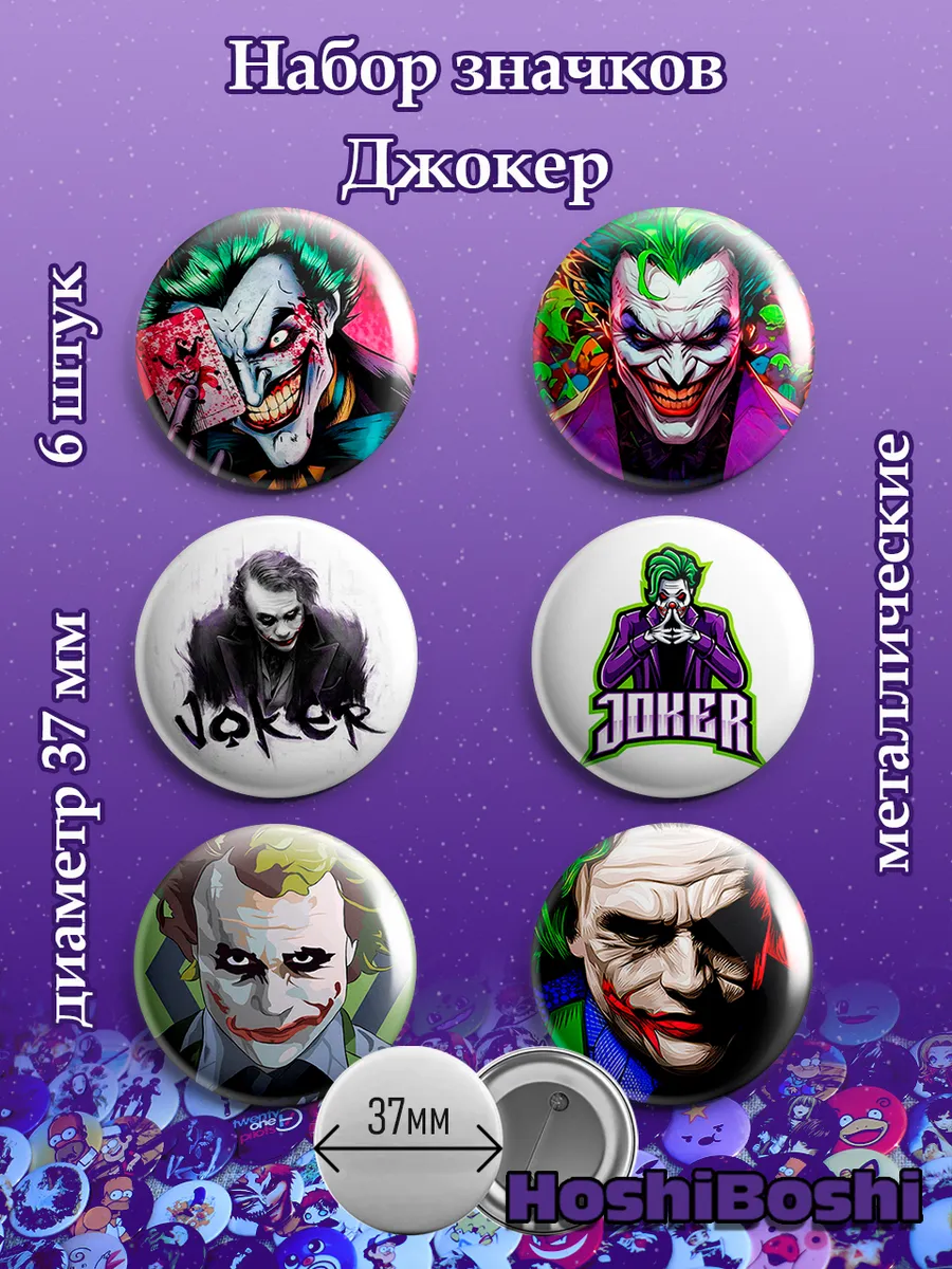 Набор из 6 металлических значков с изображениями с персонажем Джокер ( Joker ).